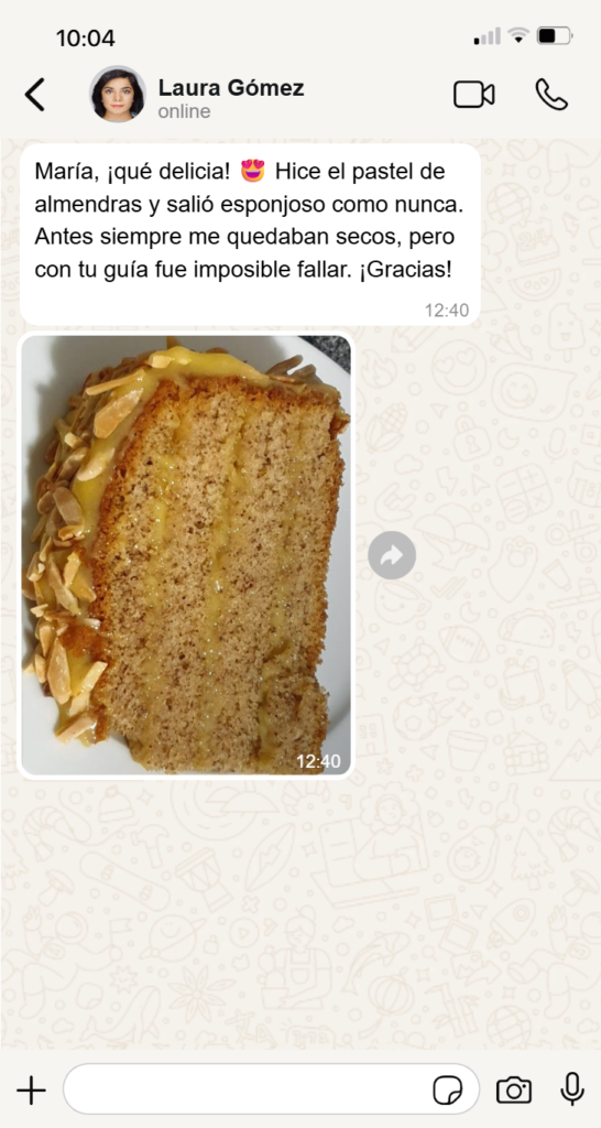 Fue entonces cuando descubrí el mundo de la cocina saludable, especialmente la low carb. Desde 2013 desarrollo recetas deliciosas y equilibradas, y ya he ayudado a miles de personas a cuidar su salud y hasta emprender con panadería saludable.